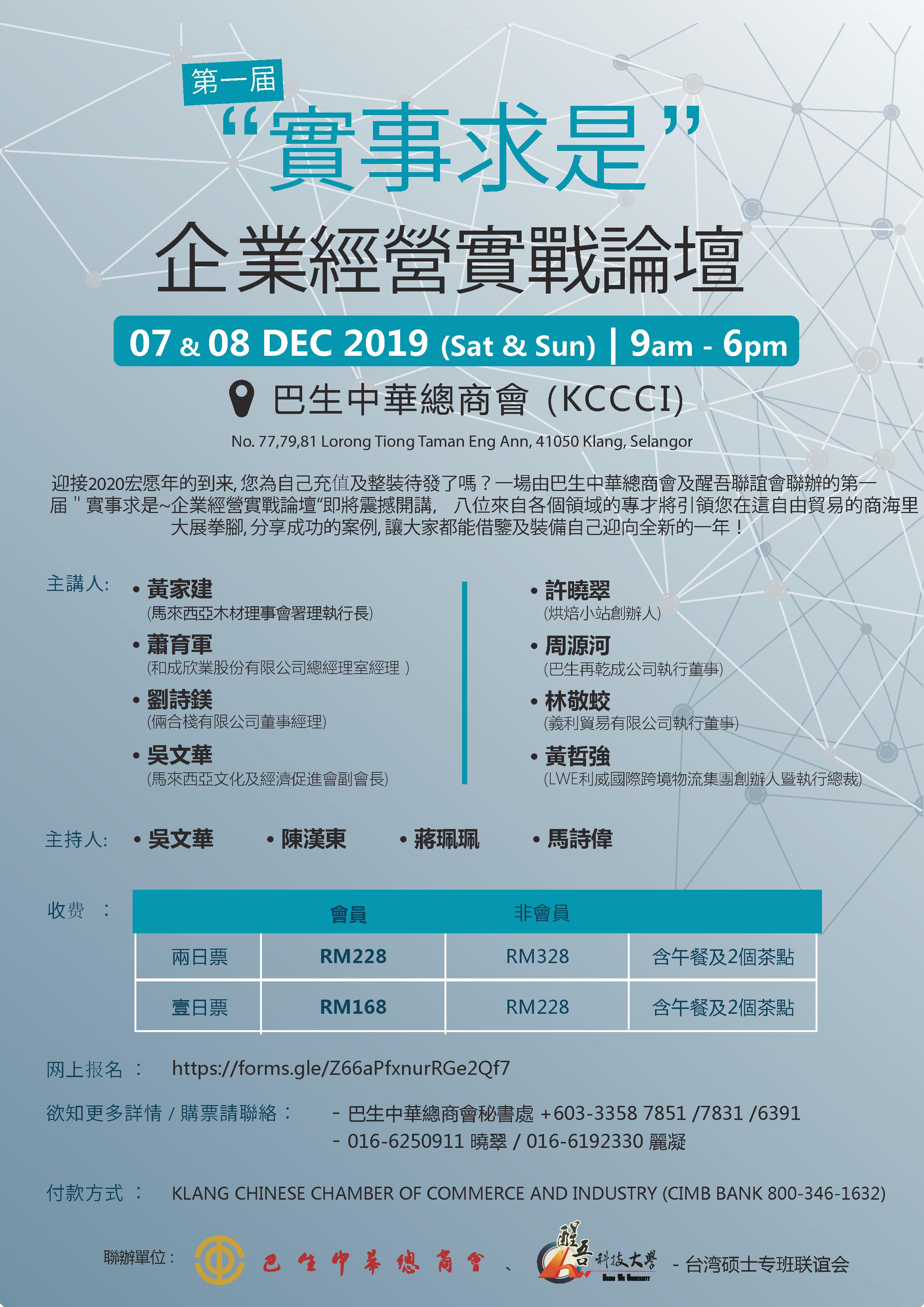 付款方式 :KLANG CHINESE CHAMBER OF COMMERCE AND INDUSTRY(CIMB Bank A/C No: 800-346-1632)