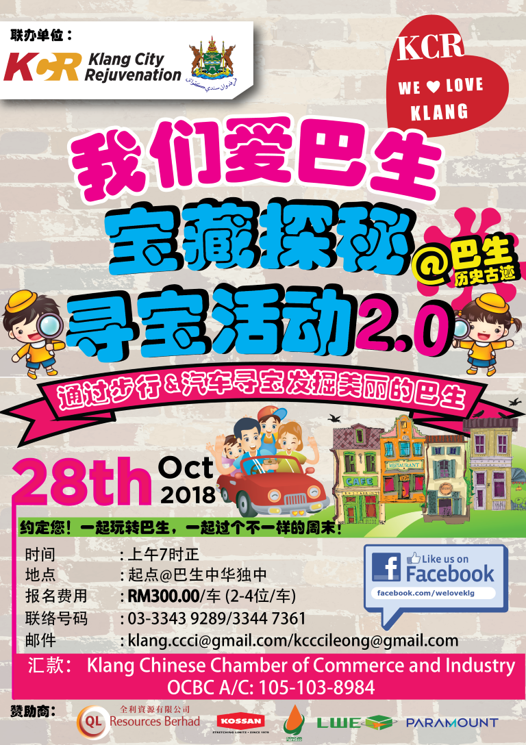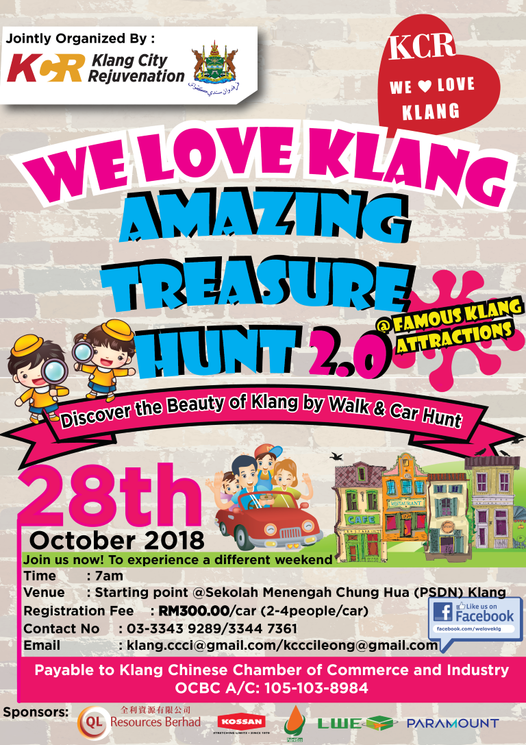 Once the amazing treasure hunt combines walking and car hunt, it becomes more challenging due to the time, endurance and intellectual based competition nature. KCR committee wishes to appeal to the public, especially families to take this opportunity on Sunday to experience the We Love Klang Amazing Treasure Hunt 2.0, enjoying the various beauty and heritage of Klang while spending memorable and quality time with family members or friends.
