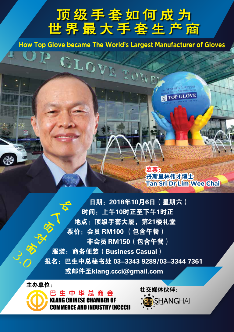 这次主讲嘉宾为顶级手套大厦董事主席丹斯里林伟才博士。丹斯里将会与大家分享顶级手套如何成为世界最大手套生产商。
