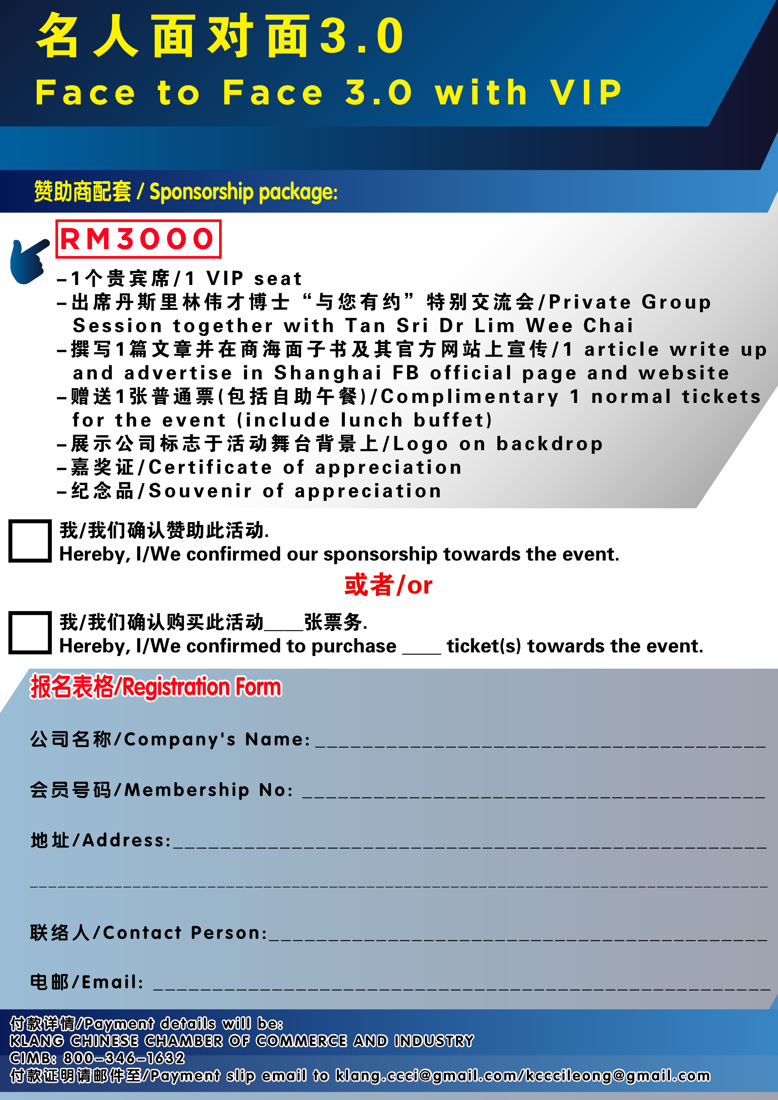 付款方式 :KLANG CHINESE CHAMBER OF COMMERCE AND INDUSTRY