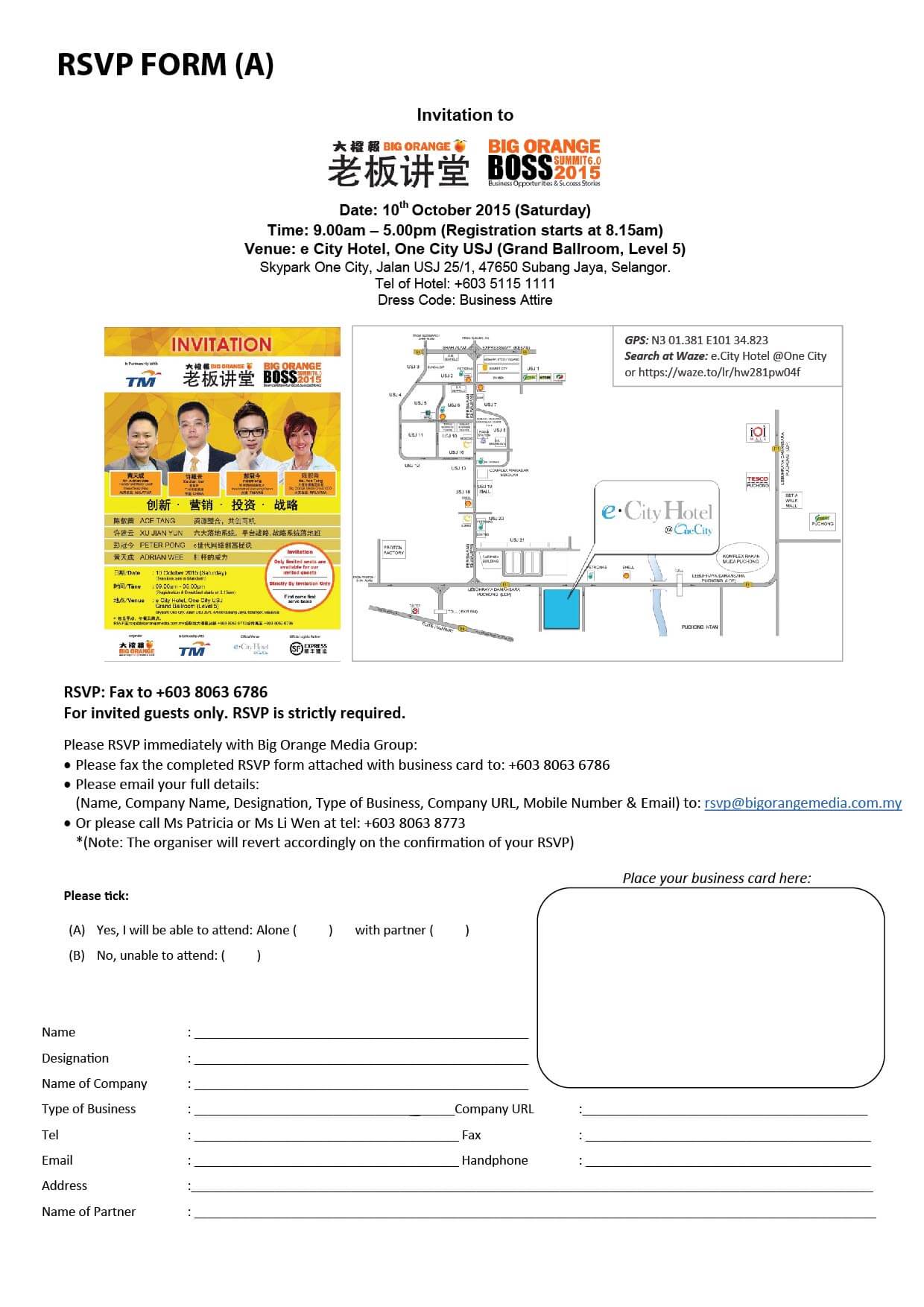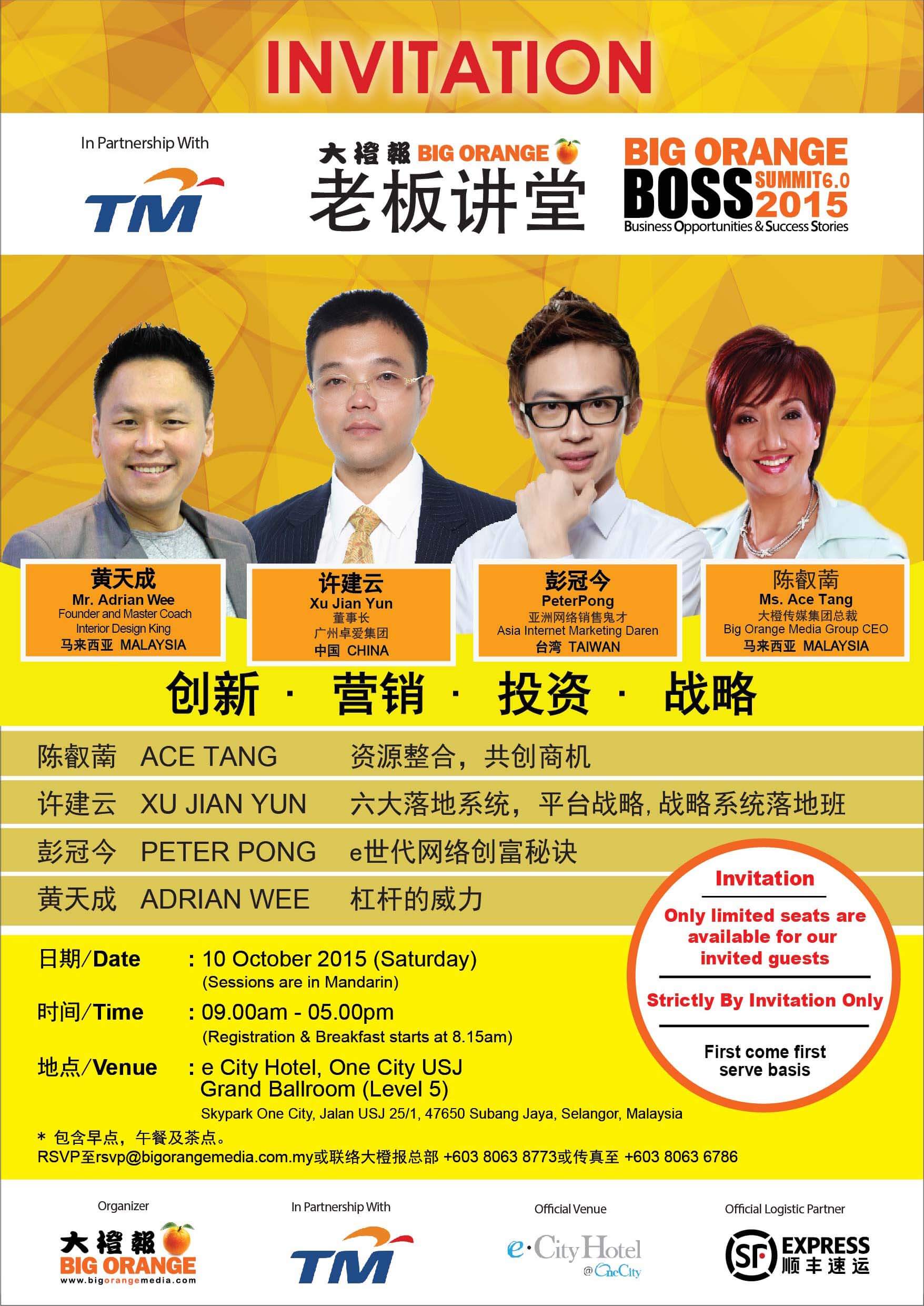 Greetings from Big Orange Media Group ! Big Orange Media Group will be organising Big Orange BOSS Summit 6.0 on 10th October 2015 . More Information as below: