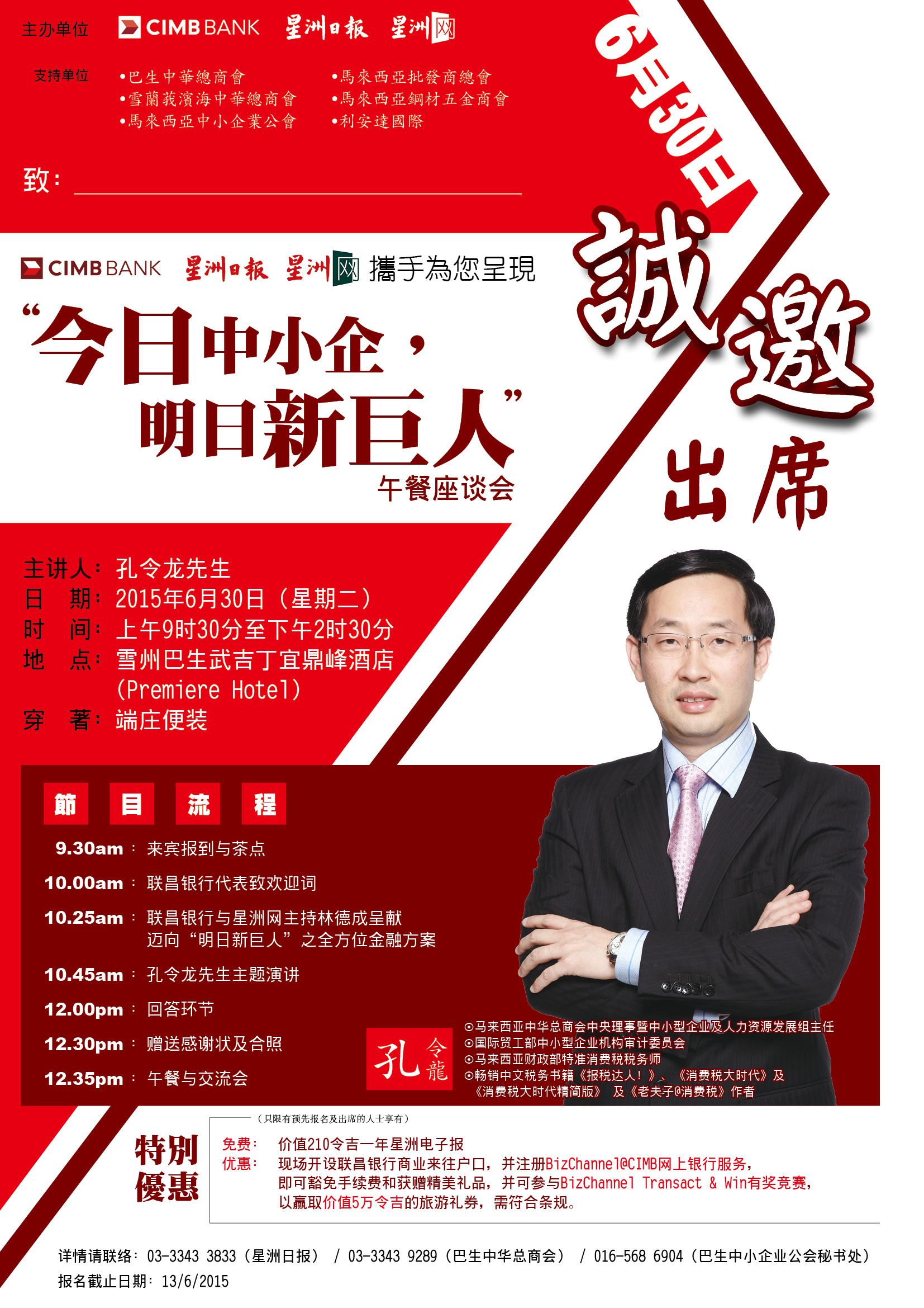 **预先报名及出席者,可获赠为期一年,价值RM210的星洲电子报**