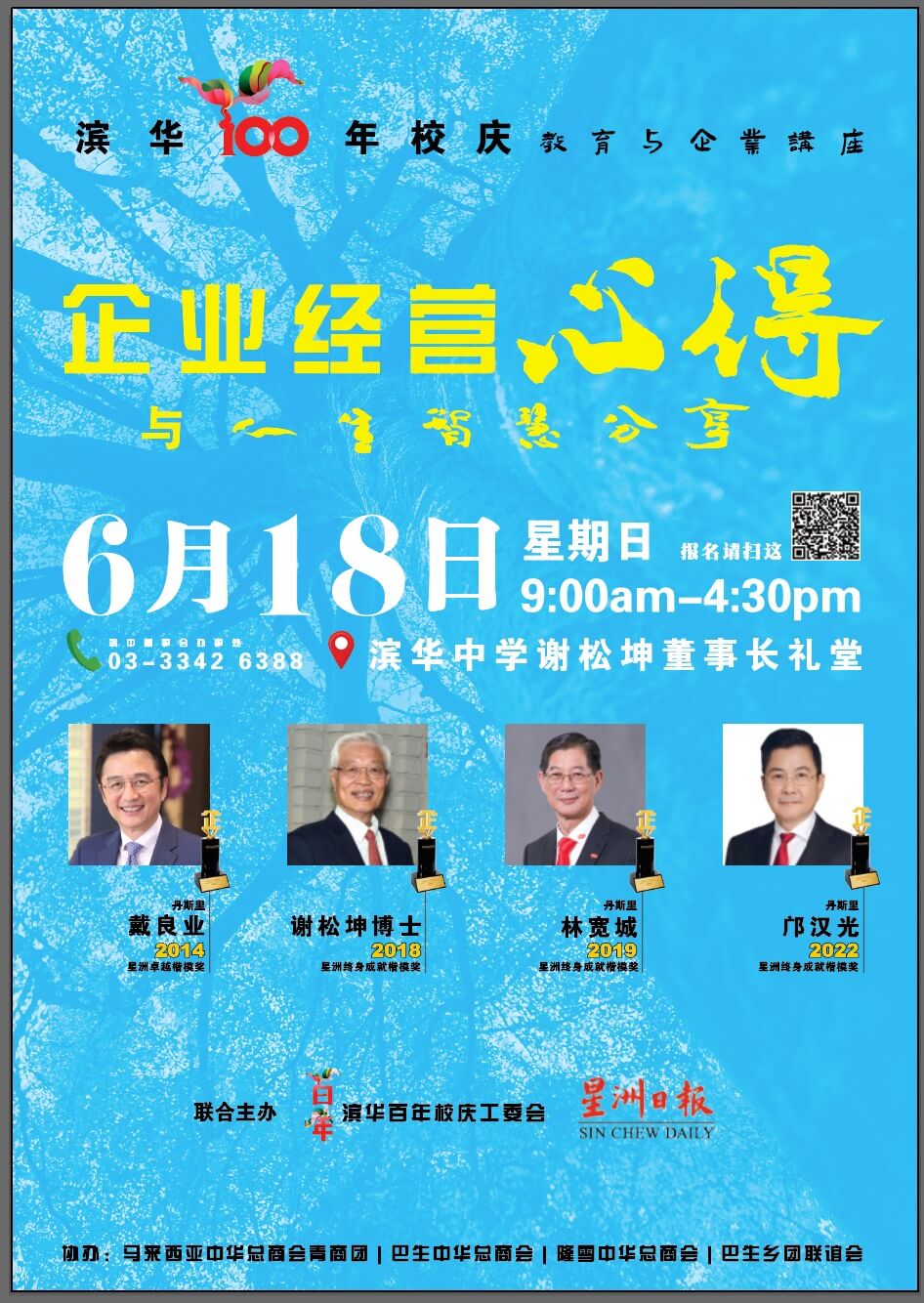 We sincerely hope that you will participate actively in the above events and attend the anniversary dinner. The fee for each dinner table is RM2,388, individual ticket is RM250.